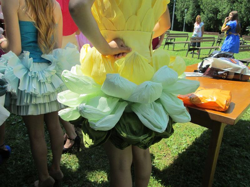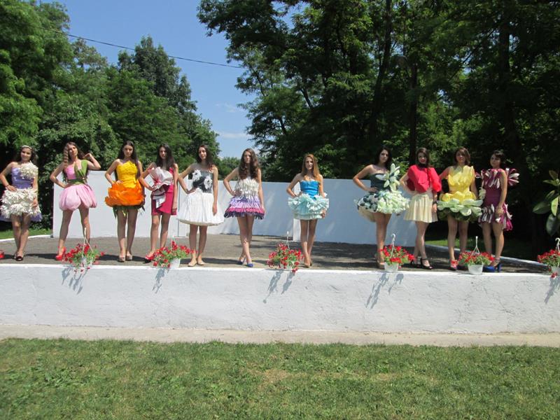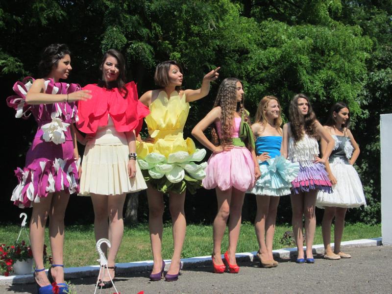 Elevele au intrecut cu mult asteptarile publicului oferind un veritabil curcubeu de rochii confectionate din hartie, plastic si carton pe care le-au prezentat cu multa gratie.